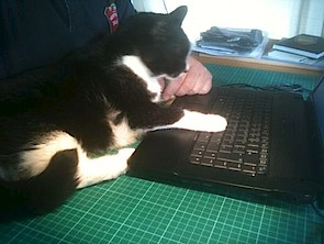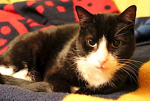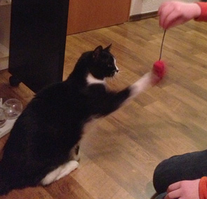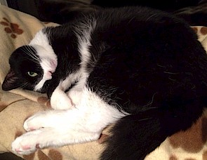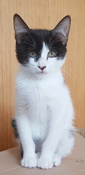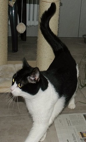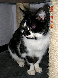 Puck kam im August 2009 mit Mama und zwei weiteren Geschwistern zur AGT. Die Familie kam aus Verhältnissen, wo die Katzen vernachlässigt wurden. Mama und Schwester wurden schnell vermittelt, aber für Puck und seinen Bruder Rochus fanden sich keine Bewerber. Vielleicht lag es daran, dass beide Kater sehr temperamentvoll waren, vielleicht auch daran, dass die Republik mit schwarz-weißen Katzen voll ist und es scheinbar interessantere Fellfarben gab und gibt.