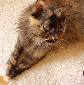 Antje war eine wunderschöne Schildpattkätzin, deren Schönheit auf Fotos jedoch gar nicht zur Geltung kam, weil sie sehr dunkel gezeichnet war.