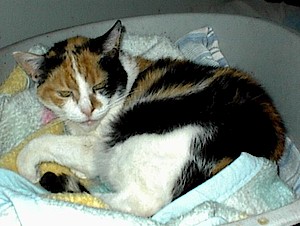 Um so verwunderter waren wir, als sie sich eines Tages von einem hingehaltenen kleinen Fleischwürfelchen angeekelt abwandte. Ein paar Stunden später sahen wir, dass sie krank war und sind sofort mit ihr zum Tierarzt gefahren. Eine grausame Woche nahm ihren Anfang. Sie bekam Antibiotika und fiebersenkende Mittel. Das Fieber sank, aber sie fraß nichts und das Mauzen wurde sehr selten und immer krächzender. Jeden Tag Tierarzt, Medikamente, Spritzen, Bluttests, usw. Wir versuchten sie mit Spritzen zu füttern, aber sie wurde immer schwächer und wir immer verzweifelter. Von FIP war die Rede und von Einschläfern. Wir konnten nicht glauben, dass unsere Katze innerhalb weniger Tage plötzlich todkrank sein sollte. Der TA machte noch den Versuch einer OP und stellte dabei dann aber fest, dass es keinen Sinn mehr hatte und ließ sie schlafen.