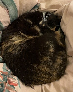 Wenn man viel durch die Wohnung lief, es also etwas trubelig war, hat sie sich lieber zurückgezogen. Wurde es jedoch ruhiger, wie abends, wenn man ins Bett ging oder morgens, so kam sie an. Wir waren nicht mal zugedeckt oder morgens noch nicht ganz wach, schon stand sie neben uns und war bereit für ihre heißbegehrten Kuscheleinheiten -Das war IHRE ZEIT-. Dazu lag sie auf der Decke oder hat sich auch in die Deckenhöhle, unter die Decke begeben. Oft hat sie sich auch einfach auf unsere Gesichter gelegt, weil da muss es wohl auch ganz bequem für sie gewesen sein. Homeoffice mit ihr war ebenfalls immer nur mit Kuschelunterbrechungen möglich.