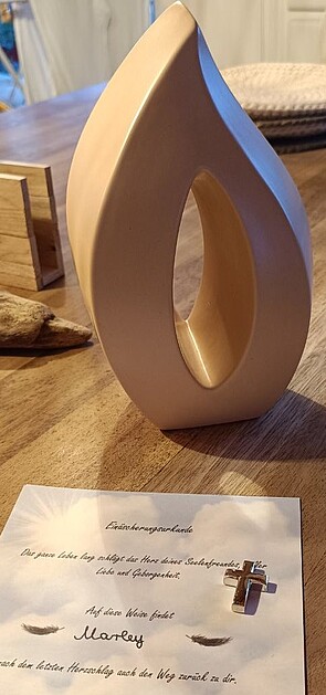 Sie haben ihn auf eigene Kosten kremieren und aus einem Teil der Asche ein Kreuz für den Sohn anfertigen lassen.