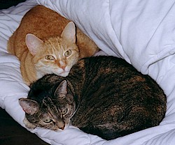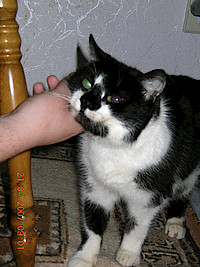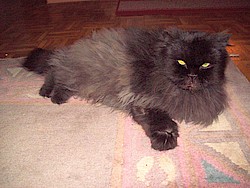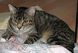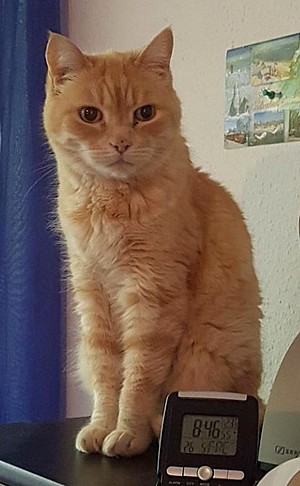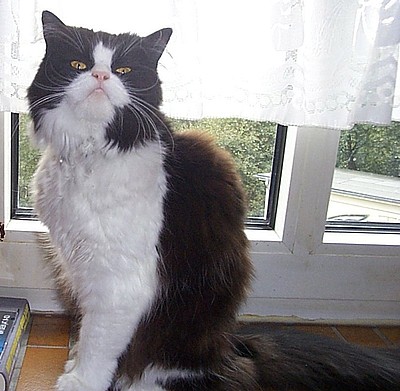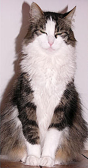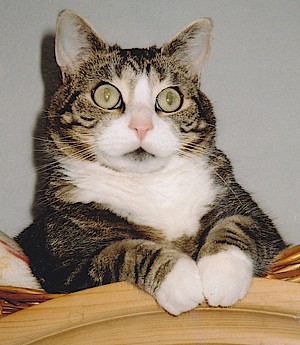 Am 30. November 2000 kam er - zusammen mit seinen Kindern Martin, Philippa und Heidi - zu mir. Am 28. November 2005 ging er über die Regenbogenbrücke: Johannes war sein Name. Unser Mitglied Eva Jechova hatte die Katzenfamilie vor einem Katzenhasser gerettet, einem Krankenpfleger in Dormagen, der der Meinung ist, dass Katzen auf einem weitläufigen Krankenhausgelände nichts zu suchen haben und deshalb umgebracht werden müßten. Alle drei Kinder fanden recht schnell ein neues Zuhause: Martin erst in Solingen, er zog aber mit seiner Familie um nach Schüttorf; Philippa wurde von unserem Mitglied Cornelia Bartsch in die Feinheiten eines Solinger (Pflege-)Haushalts eingeführt und lebt jetzt in Erkrath; Heidi ist ein Düsseldorfer Girl geworden.