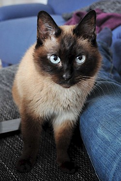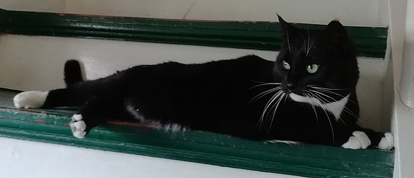 Er hat sehr genau darauf geachtet, wer sein Heim betreten hat. Sobald die Klingel ertönte, oder auch nur ein Schlüssel in der Tür drehte, war Charly sofort auf der Matte und inspizierte die Besucher und begrüßte alle mit einem "Mau", welches sehr tief und ein wenig heiser klang.