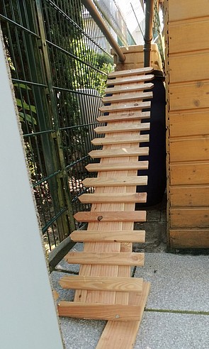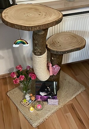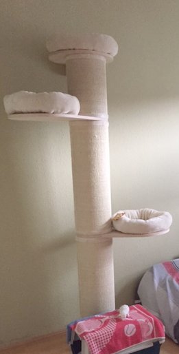 Wir haben ihr auch einen Kratzbaum selbst gebaut. Das Baumteil haben wir selbst gefällt und alles mit Liebe zum Detail, für unsere kleine Gato, gestaltet. Neben dem Balkon war dieser ihr Lieblingsplatz. Sie schien zu merken, wieviel Arbeit drin steckte - vielleicht schätzte sie den Baum deshalb so sehr.