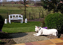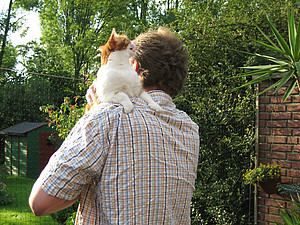 Johannes war absolut wild und ich habe mich in der ersten Zeit wirklich gefragt, was ich mir da für ein Monster ins Haus geholt hatte. An einem Sonntag im Mai 2001 jedoch faßte Johannes einen Entschluß: Vorher unnahbar warf er sich mir zu Füßen und ich konnte nicht anders, als ihn zu streicheln, was er sichtlich genoß. Aha, dachte ich, jetzt ist er vermittelbar, und ein paar Wochen später kam Frau Vogel aus Langenfeld und wollte nur Johannes. Aber Johannes wollte nicht Frau Vogel, obwohl sie und ihr Mann alles für ihn taten. Johannes und Frau Vogel waren sich einig: Johannes liebt nur mich!