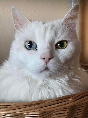 Von uns Menschen wurde er auch „der König“ genannt; denn das war er mit seinem weißen Fell seinen großen zweifarbigen Augen und seiner Grazie.
