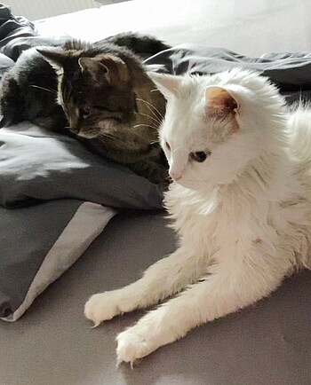 Jetzt mussten wir feststellen, dass die Frau die Katzen – getrennt – ohne unsere Kenntnis jeweils zu ihrer Tochter und zu ihrem Sohn gegeben hatte.