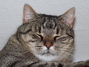 Als Omi Wilhelmina am 11. April 2007 zu uns kam, war sie in einem sehr schlechten Zustand, brauner Schmodder an Schnauze und Pfoten, ausgehungert, abgemagert, ohne Zähne, blind und taub. Ein Mann, der zwei AGT-Katzen ein neues Zuhause gegeben hat, fand sie – ausgesetzt - bei Verwandten in D´dorf im Garten. Dank an ihn, dass er NICHT weggeschaut hat.